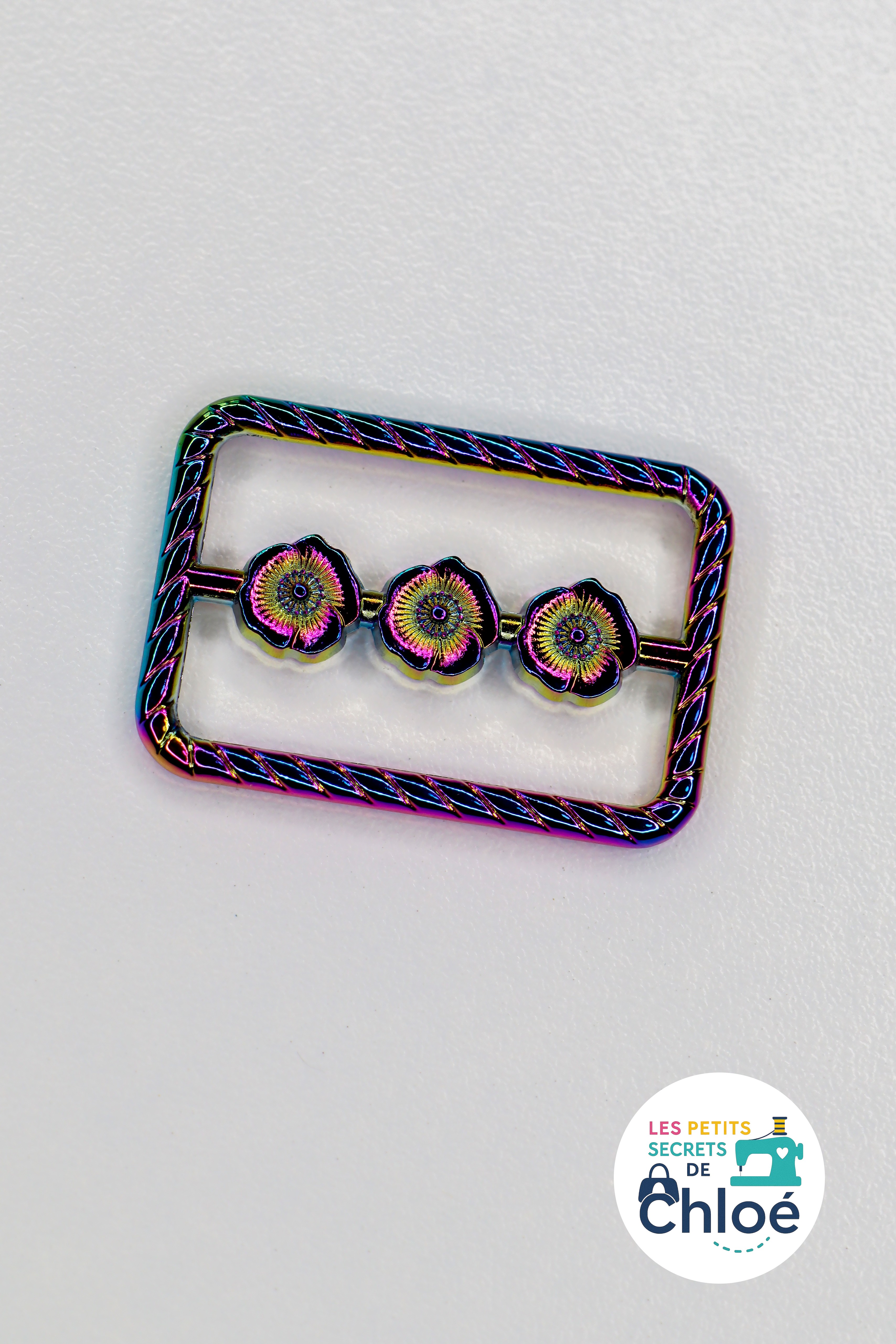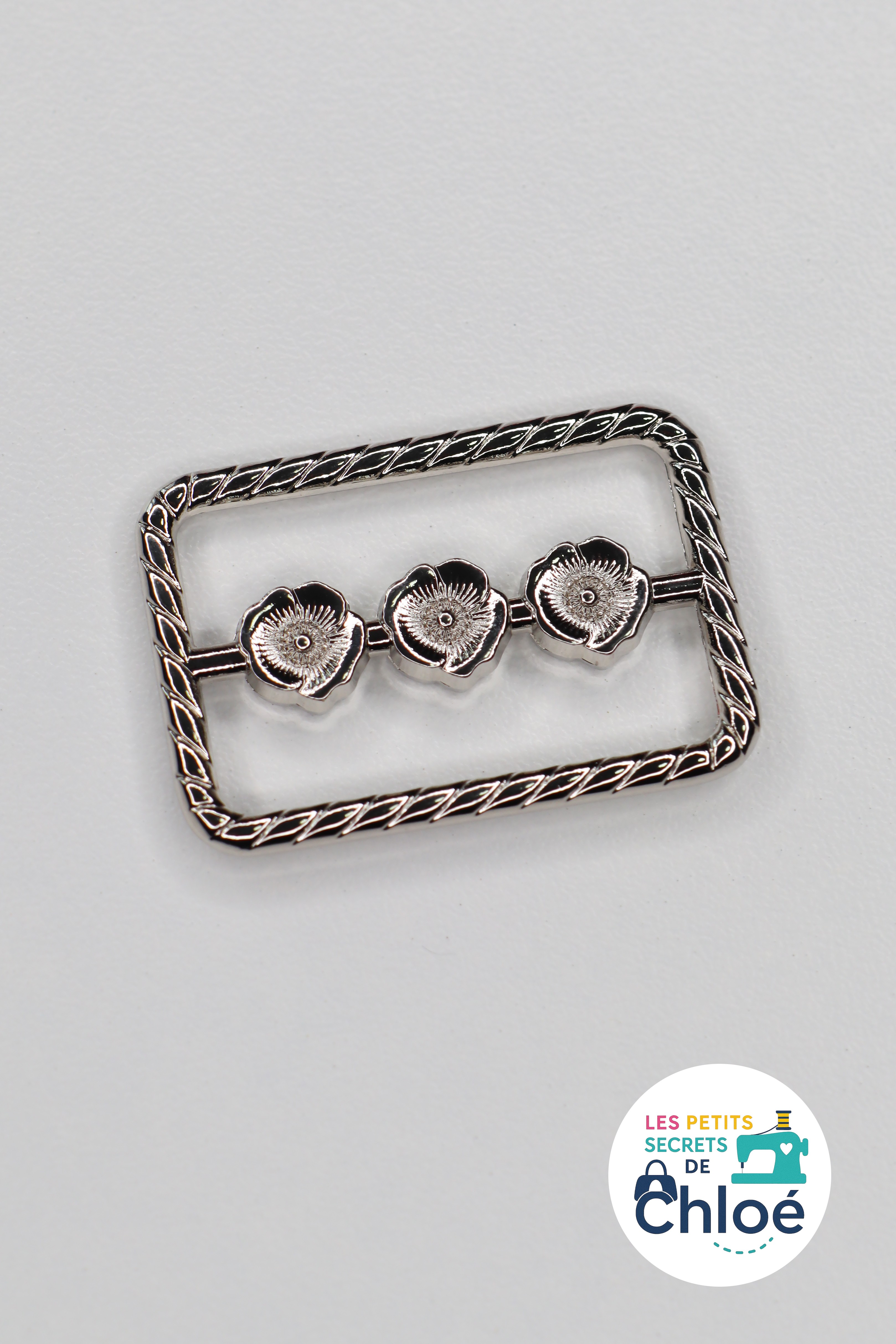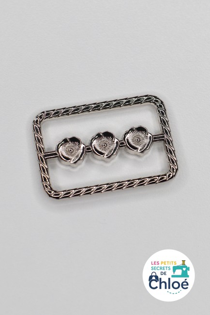 Apportez une touche élégante et originale à vos créations avec cet anneau rectangulaire au design travaillé, orné de 3 petits coquelicots.