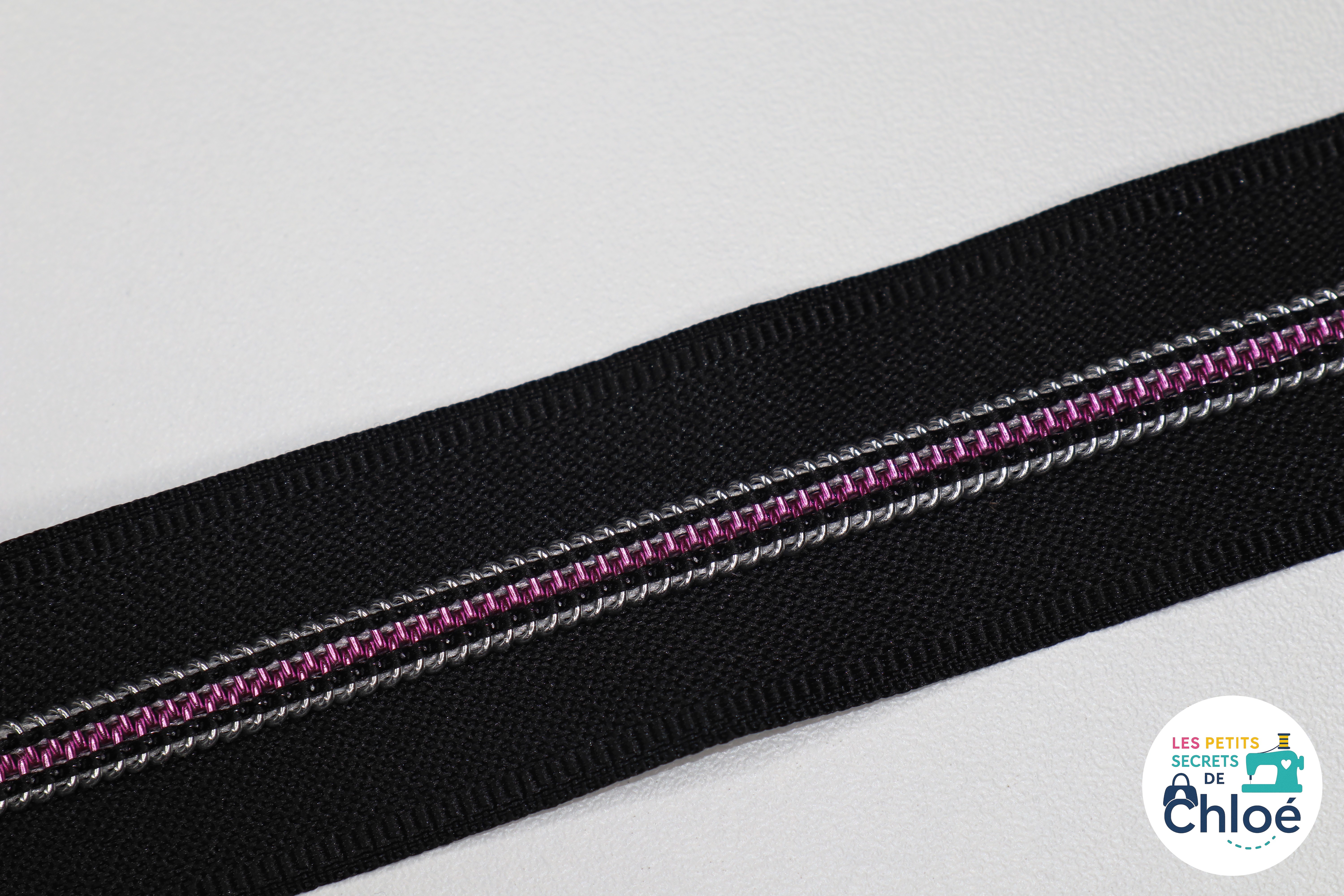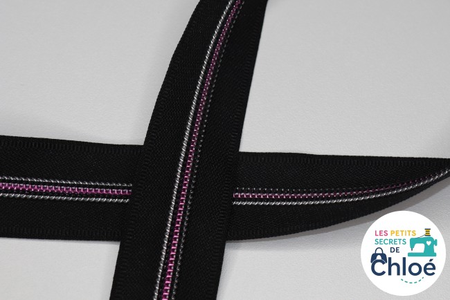 Avec sa base noire élégante et sa ligne colorée au centre, cette fermeture éclair apporte une touche originale et moderne à toutes vos créations.