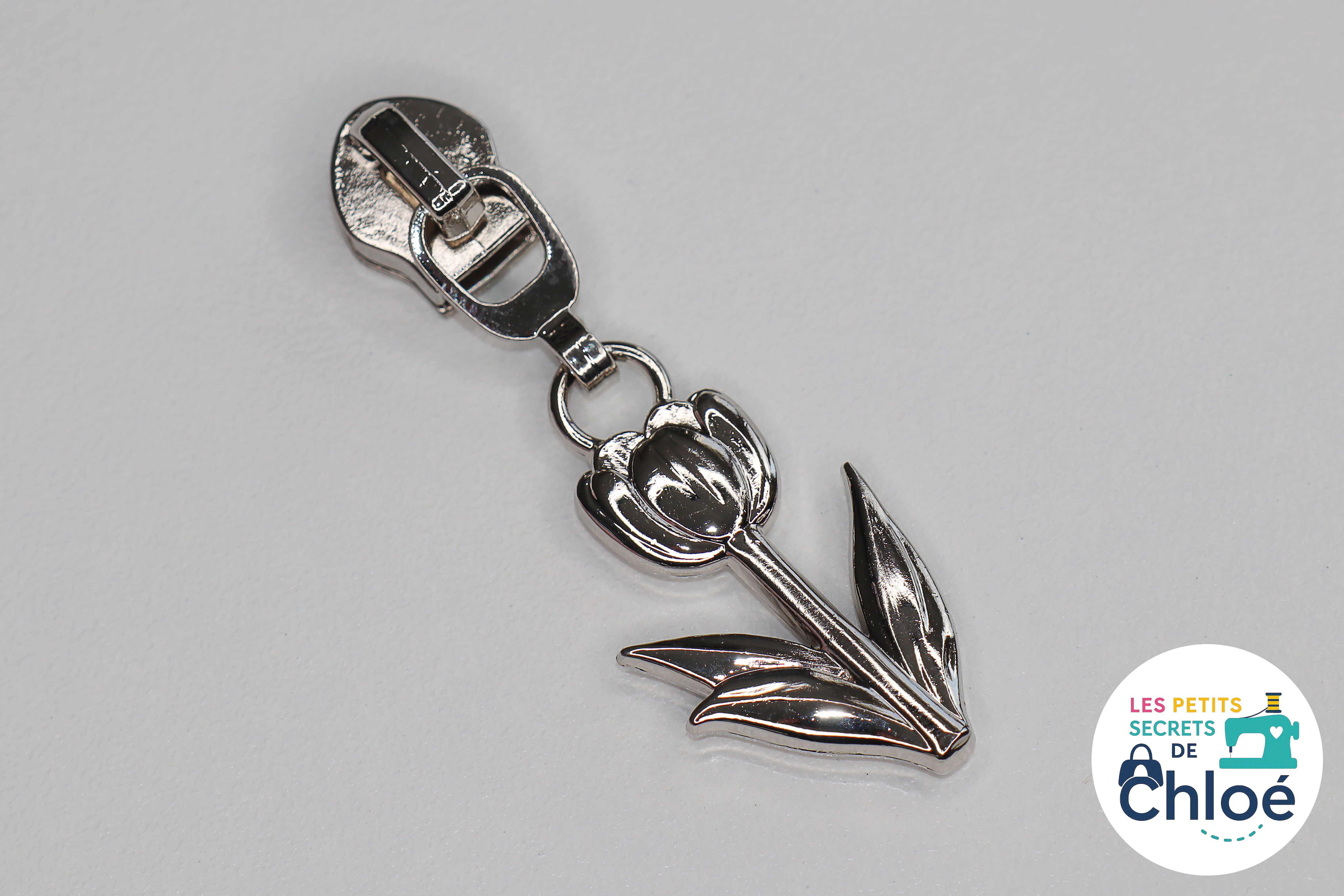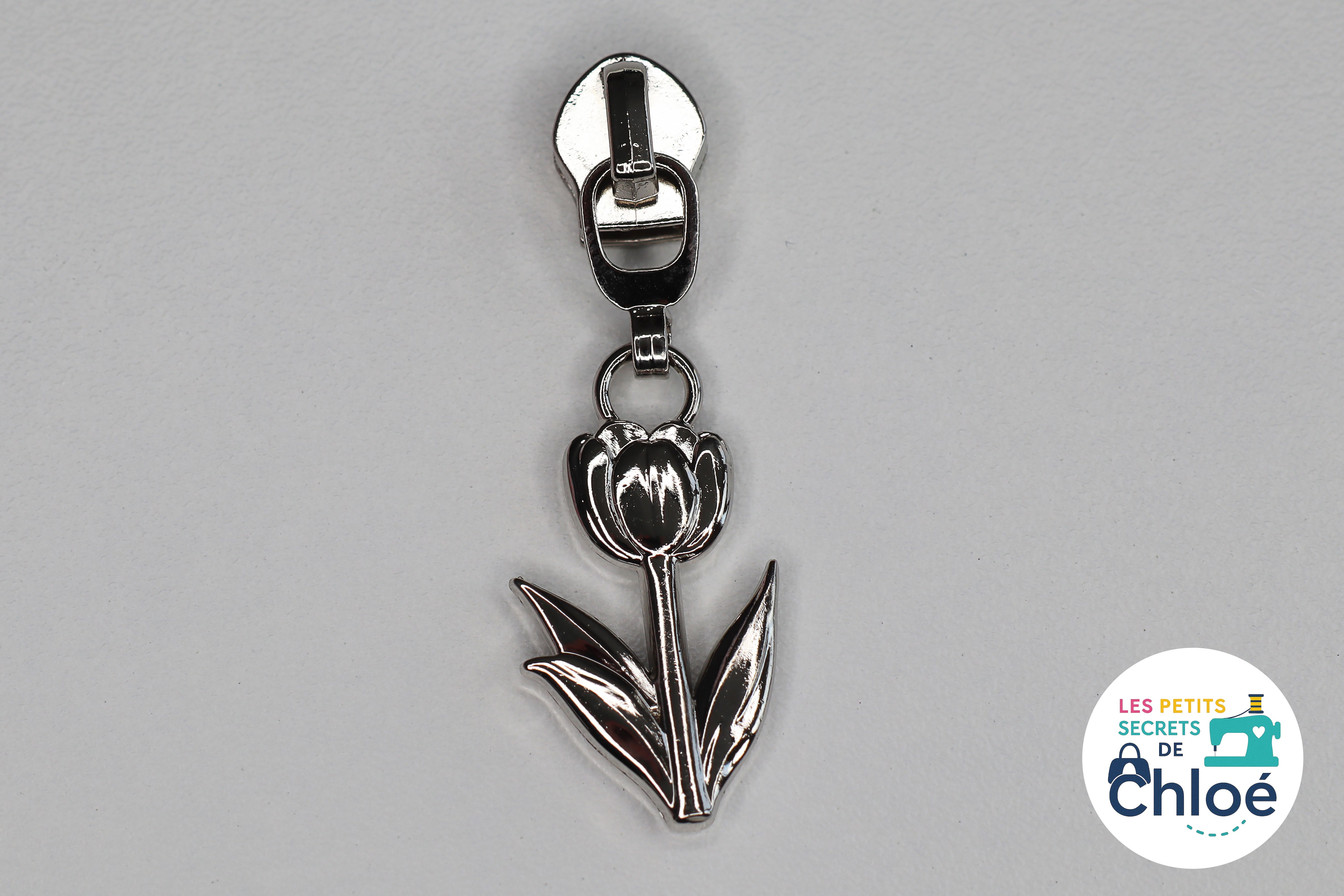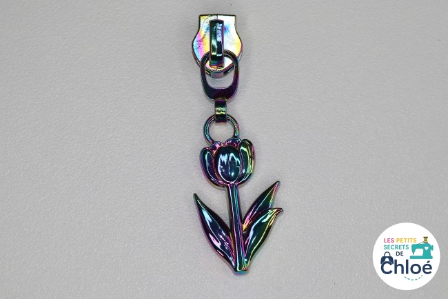 Curseur métallique décoratif en forme de tulipe.