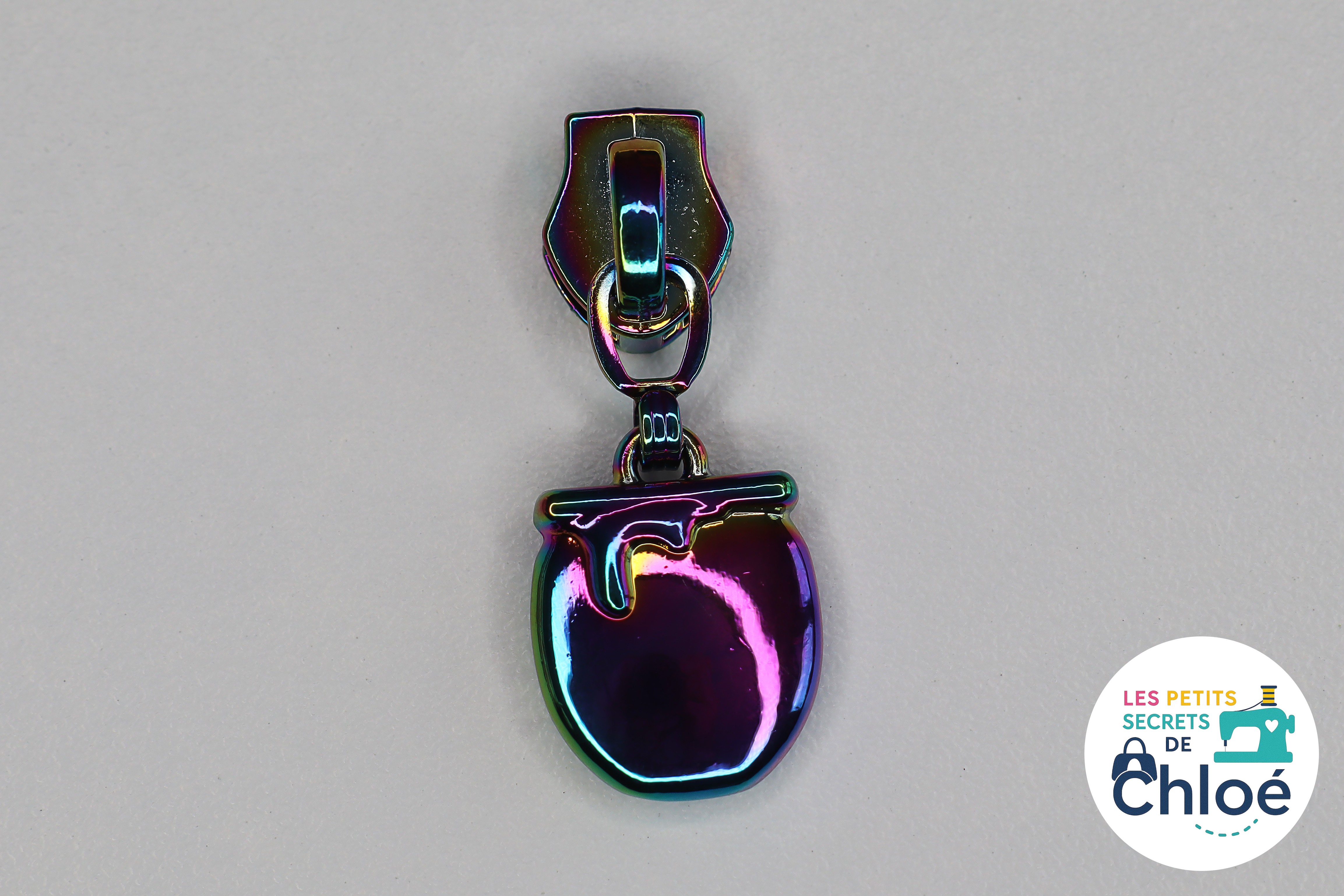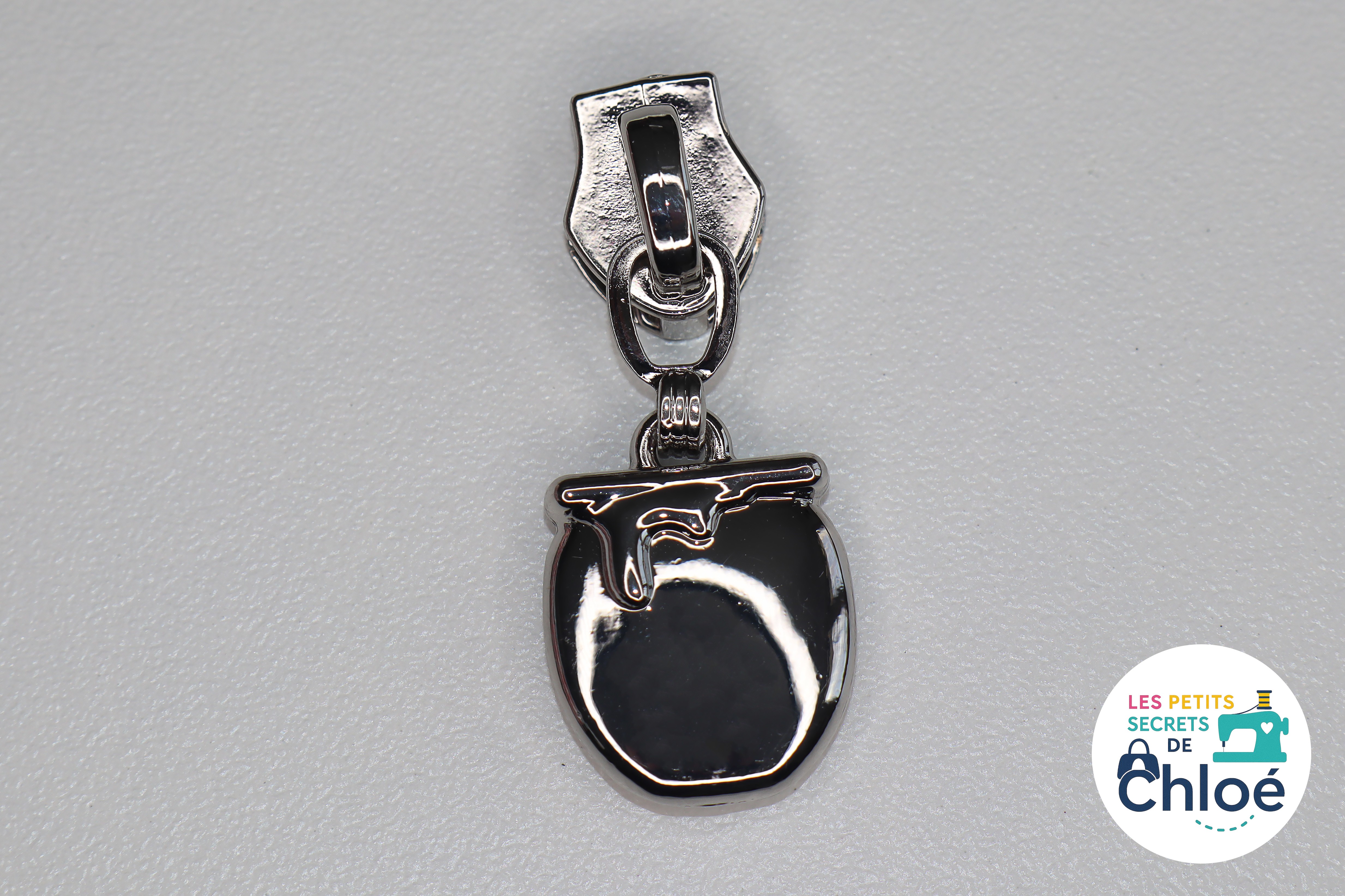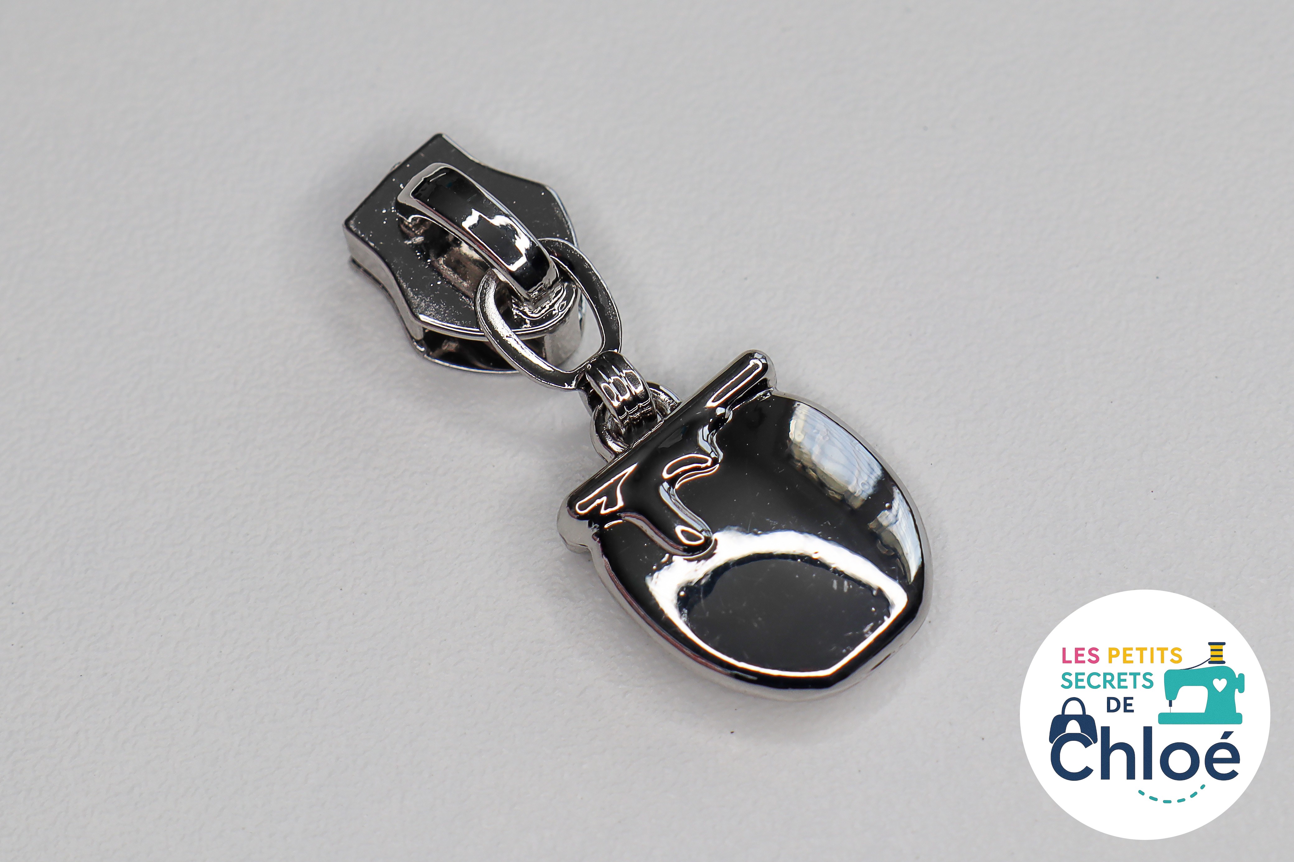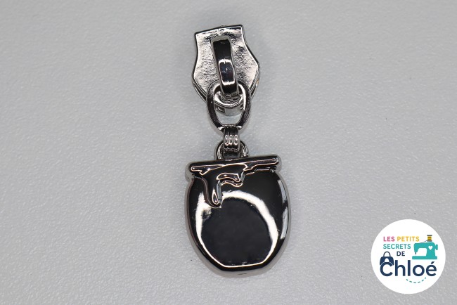 Curseur métallique décoratif en forme de pot de miel.